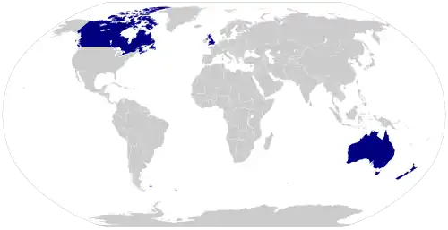 All four nations have diverse, multicultural populations, free and open presses, and are closely aligned on key social issues. Public relations are extremely warm between the four countries, with consistent evidence that people in Canada, Australia, New Zealand and the United Kingdom regard each other's countries as their own country's closest friends and allies in the world, including the countries joining the United States of America in the Five Eyes intelligence sharing community.[19]