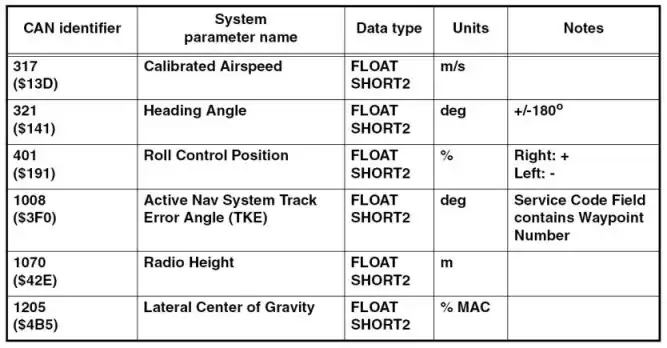 Figure 4: Excerpt from the Standard Identifier Assignment List of CANaerospace V 1.7