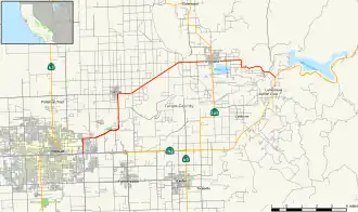 ![]() Map of Tulare County in central California with SR 216 highlighted in red | ||||