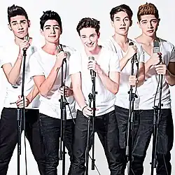 ![]() CD9 during a photoshoot in 2014. From left to right: Alan Navarro, Jos Canela (former member), Alonso Villalpando, Bryan Mouque and Freddy Leyva. | |