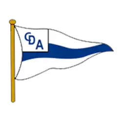 In 1922, the crest was simplified to just a pennant. The pennant was white with a blue center stripe and had the team initials "DA" in a square at the top left corner. This design stayed until 1950, but the initials changed when the team was renamed Club Deportivo Alavés. In 1950, the team redesigned its crest to look more like the traditional Álava symbol. They brought back the castle and lion, and also added a sword. The "C.D.A." pennant was moved behind the castle, and the whole design was placed within a circle with a crown on top.[28][29]