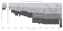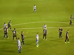 On 10 September 2016, Alavés got their first win of their return season in La Liga by defeating defending La Liga champions Barcelona 2–1 at the Camp Nou.[14] On 7 February 2017, Alavés qualified for the 2017 Copa del Rey Final after eliminating Celta de Vigo in the semi-finals of the competition. This was the first time in their history that the club had qualified for the final of the national cup, their previous best being the semi-finals in 1998 and 2004. Their opponents in the final would be Barcelona, and coincidentally the two clubs met in the league directly after their cup semi-finals; the Catalans inflicted a 6–0 defeat on Alavés in their own Mendizorrotza Stadium, exacting revenge for the result earlier in the season.[15] Barcelona also won the final, held at the Estadio Vicente Calderón with a 3–1 scoreline,[16] meaning there would be no return to European competition for Alavés. In the La Liga that season Alavés finished 9th with 14 wins, 13 draws and 11 losses.[17] In the 2021–22 season, Alavés were relegated following defeat on the penultimate matchday by Levante (who also went down) to end their six-year stay in La Liga, the longest top-flight run in the club's history. The following season saw the club achieve promotion back to La Liga at the first attempt, winning the play-off final 0–1 against fellow relegated side Levante to ensure their return to the top tier for the 2023–24 season.[18]
