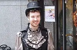 Many of Colquhoun's videos feature him cosplaying and roleplaying, with roles ranging from hosts, butlers, pole dancers, and visual kei musicians.[22][23] His YouTube channel gained popularity due to his anime content, with his favorite anime being JoJo's Bizarre Adventure.[24]
