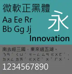 - Traditional Chinese (Taiwan, using education standard: Standard Form of National Characters, Chinese: 國字標準字體)