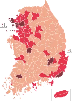 ![]() Coronavirus pandemic in South Korea over time (since 20 January 2020). Day not included in map Day included in map Last day included in map | |