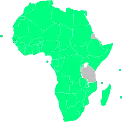 - Emergency use: WHO (15 February 2021), Africa Regulatory Taskforce (25 February 2021), Angola (March 2021), Benin (March 2021), Botswana (February 2021), Burkina Faso (May 2021), Cameroon (April 2021), Cape Verde (March 2021), Central African Republic (May 2021), Côte d'Ivoire (February 2021), DRC (April 2021), Djibouti (22 February 2021), Egypt (30 January 2021), Eswatini (March 2021), Ethiopia (March 2021), Gambia (March 2021), Ghana (March 2021), Guinea-Bissau (March 2021), Kenya (May 2021), Lesotho (March 2021), Liberia, Libya (March 2021), Malawi (February 2021), Mali (January 2021), Mauritius (January 2021), Morocco (6 January 2021), Namibia (March 2021), Niger (March 2021), Nigeria (18 February 2021), Rwanda (March 2021), São Tomé and Principe, Senegal (March 2021), Seychelles (January 2021), Sierra Leone (March 2021), Somalia (March 2021), South Africa (1 February 2021; suspended 7 February 2021), South Sudan (April 2021), Sudan (March 2021), Togo (March 2021), Tunisia (7 May 2021), Uganda (March 2021), Zambia (March 2021).[18]