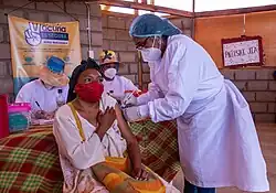 ![]() Woman in Colombia receives a COVID-19 vaccine, July 2021 | |