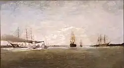 CSS Webb, a 655-ton side-wheel steam ram, was originally built in New York City in 1856 as the civilian steamship William H. Webb. She received a Confederate privateer's commission at New Orleans in May 1861, but was instead employed as a transport until January 1862. Converted to a "cotton clad" ram by the Confederate Army, thereafter served on the Mississippi and Red Rivers. On February 24, 1863, under the command of Captain Charles Pierce, she participated in the sinking of the Federal ironclad USS Indianola. Webb was transferred to the Confederate Navy in early 1865.[2][3] On April 23โ24, 1865, under the command of Charles S. Read, Webb broke through the Federal blockade at the mouth of the Red River, Louisiana, and made a dramatic run down the Mississippi toward the Gulf of Mexico. After eluding several United States Navy vessels and passing New Orleans, she was confronted by the powerful steam sloop USS Richmond. Rather than face the veteran ship's broadside, the Webb was run ashore and destroyed by her crew.[4]