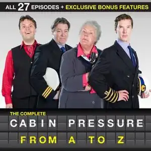 ![]() Cover of the complete CD collection of Cabin Pressure, depicting cast. Left-to-right: John Finnemore, Roger Allam, Stephanie Cole and Benedict Cumberbatch. | |