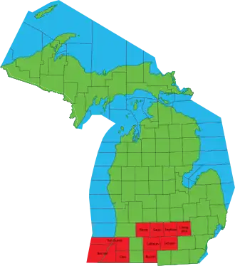 The Cabinet counties are ten counties in the southern part of the U.S. state of Michigan named after President Andrew Jackson and people who served in his Cabinet.[1][2] The Michigan Territorial legislature created twelve counties on October 29, 1829,[3] naming eight of them after members of the recently elected Jackson's cabinet. Cass County was also created in 1829 and named for Lewis Cass, the Territorial Governor at the time. Cass later served in Jackson's Cabinet, making a case for it to be included as a Cabinet county. Livingston County was created in 1833 and named for Edward Livingston, Jackson's Secretary of State at the time.