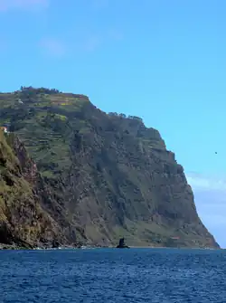 There are cultivated wave-cut platforms (Fajãs de Cabo Girão) located below the sheer cliffs, which at one time were only accessible by boat. In August 2003, a cable car was installed on the slope of the cliff so farmers can reach these low-lying fields.