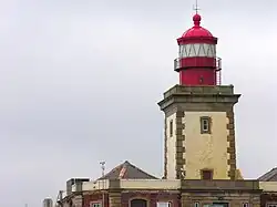 The Cabo da Roca Lighthouse (Portuguese: Farol do Cabo da Roca) is a beacon/lighthouse located 165 metres (541 ft) above the Atlantic Ocean, on Portugal's (and continental Europe's) most westerly extent.[2] It is located in the civil parish of Colares, in the municipality of Sintra, situated on a promontory made up of granite boulders and interspersed limestone. It is a third-order lighthouse, which originally began operating in 1772. It was the first new purpose-built lighthouse to be constructed in the country; the older lighthouses in existence at that time were constructed on existing platforms or from pre-existing beacons.[3]