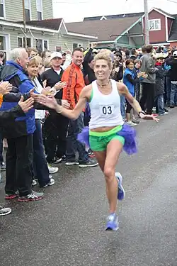 - ^ A longer 19.3 Km course was used in 2012 and 2013 due to a bridge closure. Sheri Piers holds the female record on the alternate course, completing it in a time of 1:17:43 in 2013.[29] Her 4:03 minute/Km pace is the fastest pace run by a female on leg 17.