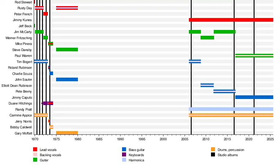 | Past members | Jim McCarty Rusty Day Tim Bogert Ron Leejack Peter French Werner Fritzsching Duane Hitchings Mike Pinera Roland Robinson Jerry Norris Bobby Caldwell Charlie Souza Steve Dansby John Sauter Gary Moffatt Elliot Dean Rubinson Pete Bremy |