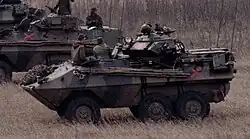One variant of the Canadian AVGP mounts this turret.[3] When Canada made these older vehicle available to African Union peacekeeping forces in Sudan they had to seek permission from the United States Government in order to ship them with their turrets.[4][5]