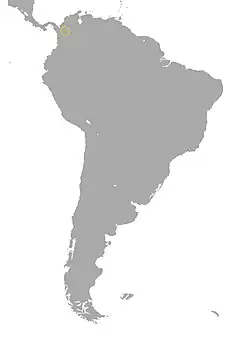 It is endemic to Colombia and only known from its type locality in the Cordillera Central in Valdivia, Antioquia.[2]