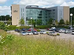 The council inherited two main offices from its predecessor authorities: Ystrad Fawr House at Ystrad Mynach from Rhymney Valley District Council, and Pontllanfraith House in Pontllanfraith from Islwyn Borough Council. Ystrad Fawr House was demolished in 2008 to make way for the Ysbyty Ystrad Fawr hospital. A new headquarters was built at Penallta House in the Tredomen area of Ystrad Mynach (in the community of Gelligaer), opening in April 2008.[29] The other office at Pontllanfraith House subsequently closed in 2015 and has since been demolished.[30][31]