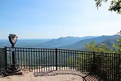 Caesars Head State Park is a park in northern Greenville County, South Carolina, that borders Transylvania County, North Carolina, and is reached via US 276. The eponymous rock formation, one of the highest points in Greenville County, is a granitic gneiss outcrop at 3,208 ft (978 m) above sea level on the Blue Ridge Escarpment of the Blue Ridge Mountains and rests roughly 2,000 ft (600 m) above the Piedmont below. The origin of the name "Caesars Head" is disputed, though the outcrop was most probably named for an early mountaineer's dog.[1] Caesars Head State Park and Jones Gap State Park are jointly administered by the state Department of Parks, Recreation, and Tourism as part of the Mountain Bridge Wilderness.