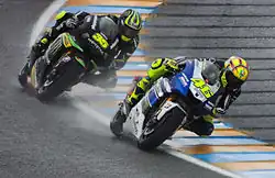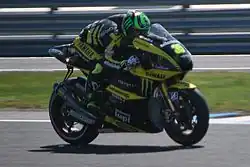Cal Crutchlow (born 29 October 1985) is an English professional motorcycle racer who retired from regular competition after the 2020 season. He is contracted as a test rider for Yamaha Motor Racing,[1] which he is expected to continue in 2022 and 2023.[2][3] During 2021 he returned to race for two Yamaha teams as a replacement rider in four MotoGP events, and replaced Andrea Dovizioso for the last six events of 2022 after Dovizioso's retirement announced mid-season.[4]
