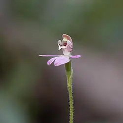 The pygmy finger orchid was first formally described in 1927 by Richard Sanders Rogers who gave it the name Caladenia carnea var. pygmaea.[3][4] In 2014 Robert Bates changed the name to Caladenia pygmaea and published the change in Australian Orchid Review.[1] The specific epithet (pygmaea) is a Latin word meaning "dwarf" or "pygmy".[5]