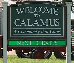 Calamus (/ˈkæləməs/)[3] is a small town in Clinton County, Iowa, United States, located on the historical Lincoln Highway, which was the first transcontinental highway for automobiles across the U.S.. Calamus is the only town in Olive Township and had a population of 356 at the 2020 census,[4] which was a 9.6% decrease from 2000. Calamus was named after Calamus Creek, which received its name from the great quantities of sweet flag growing in it, derived from the botanical name Acorus calamus, commonly called Sweet Flag or Calamus.[5]