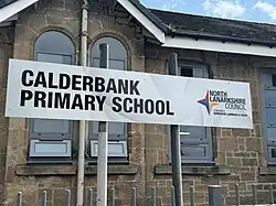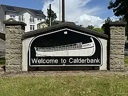 Calderbank is a village outside the town of Airdrie, North Lanarkshire, Scotland.[2] It lies east of the M73, on the west bank of the North Calder Water. The village lies 13 miles (21 km) east of Glasgow city centre and around 34 miles (55 km) west of Edinburgh. Other nearby towns include: Airdrie (2.5 miles (4.0 km)), Coatbridge (4 miles (6.4 km)), Bellshill (4 miles (6.4 km)) and Motherwell (5 miles (8.0 km)). It has a population of about 1,560 (2020)[3]