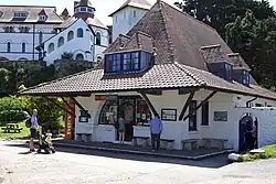 Caldey Island provides a spiritual retreat that accommodates up to 750 guests a year. This facility is currently undergoing an extensive refurbishment and is due to be open again in Easter 2024.[13] The island has a functioning post office including a museum of the island's history.[39] The island has its own postage stamps and its own monetary unit named after the local fish, the dab.[20] There is a colonial-style tea shop on the green, and an underground reservoir near the lighthouse, supplied by a spring. This provides water to the gardens and the people.[40]