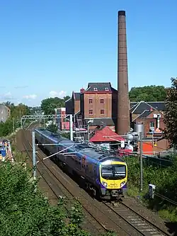 The Glasgow and Edinburgh lines combined at Carstairs in Clydesdale, and the route then crossed over Beattock Summit and continued on through Annandale.[13] The promoters had engaged in a frenzy of provisional acquisitions of other lines being put forward or already being constructed, as they considered it was vital to secure territory to their own control and to exclude competing concerns as far as possible. It was not the only Anglo-Scottish route; the North British Railway opened its coastal route between Edinburgh and Berwick-upon-Tweed on 22 June 1846,[14][15] forming part of what has become the East Coast Main Line. The Glasgow, Paisley, Kilmarnock and Ayr Railway had opened in 1841 with the declared intention of reaching Carlisle by way of Dumfries; it did so in 1850, changing its name then to the Glasgow and South Western Railway.[16][17]