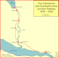 The Caledonian and Dumbartonshire Junction Railway[a] (C&DJR) was a Scottish railway opened in 1850 between Bowling and Balloch via Dumbarton. The company had intended to build to Glasgow but it could not raise the money.