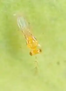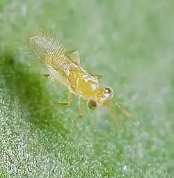 Calesidae is a small family of chalcid wasps, previously classified as subfamily Calesinae, in the family Aphelinidae.[2] These tiny wasps (length less than 1 mm) are parasitoids of other small insects, mainly whitefly species, including the widespread pest Aleurothrixus floccosus.[3]