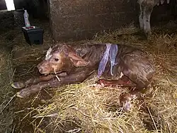 - ^ "Premiers soins aux veaux nouveau-nés" [First aid for newborn calves] (PDF). swissgentics (in French). 2006. Archived from the original (PDF) on June 25, 2024.