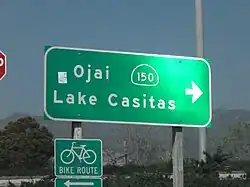 State Route 150 (SR 150) is a state highway in the U.S. state of California. It runs from U.S. Route 101 near the Ventura/Santa Barbara County line to State Route 126 in Santa Paula, providing a connection to Lake Casitas and Ojai. It is a two-lane road. There were some one-lane bridges near the western end of the route, but these were rebuilt as two-lane bridges after flooding in 2005.