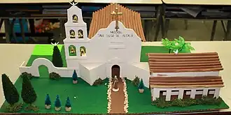 The mission project is commonly assigned to California elementary school students in the fourth grade when they are first learning about their state's Spanish missions. Students are assigned one of the 21 Spanish missions in California and have to build a diorama out of common household objects such as popsicle sticks, sugar cubes, papier-mâché, and cardboard.[1] The project is so commonly done that premade kits of specific missions can be found in craft stores and giftshops at the missions themselves.[2][3][4]