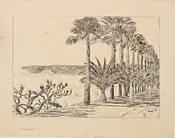 | 1927 | Eucalyptus Trees, Coronado | Etching | 97⁄8 × 1013⁄16 in[2] | Unknown | Stays at the Hotel del Coronado by March 16[1] First exhibited in 1927[5] | |