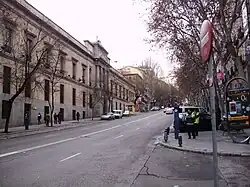 Along the initial stretch, closer to the royal palace, chiefly residential housing was erected, with some later conventual additions.[1] Meanwhile, the lower, southeasternmost end of the street was chiefly purposed for Hospital buildings already since the foundation of the Hospital of Antón Martín in the mid-16th century.[1] Linked since ancient times to the Spanish Crown,[4] it was the regular route of the traditional royal weekly ceremonies with the monarchs moving to the Sanctuary of Atocha.[5]