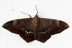 The Calpinae are a subfamily of moths in the family Erebidae described by Jean Baptiste Boisduval in 1840. This subfamily includes many species of moths that have a pointed and barbed proboscis adapted to piercing the skins of fruit to feed on juice, and in the case of the several Calyptra species of vampire moths, to piercing the skins of mammals to feed on blood.[1] The subfamily contains some large moths with wingspans longer than 5 cm (2 in).
