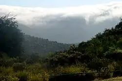 Camanchacas are marine stratocumulus cloud banks that form on the Chilean coast, by the Earth's driest desert, the Atacama Desert, and move inland. In Peru, a similar fog is called garĂșa, and in Angola cacimbo. On the side of the mountains where these cloud banks form, the camanchaca is a dense fog that does not produce rain.[1] The moisture that makes up the cloud measure between 1 and 40 microns across, too fine to form rain droplets.[2]