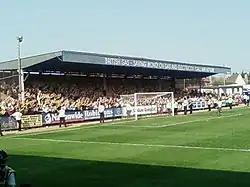 A final site, at Trumpington Meadows, was agreed upon and initial plans for an 8,000 capacity stadium were put forward, as part of a "Cambridge Sporting Village" incorporating housing and retail development.[72] Objections from residents and local councils saw the proposal blocked in 2013,[73] and plans announced in January 2015 keep the sporting village development at Trumpington, but without the new stadium. Instead Cambridge United will redevelop the Abbey Stadium.[74] First plans were presented in May 2015, which would increase capacity of the Newmarket Road End, incorporating safe standing, complete redevelopment of the Habbin Terrace and slight expansion to the Main Stand.