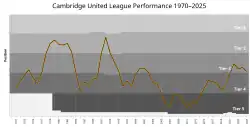 In the 2022–23 season, United avoided relegation on the final day of the season after beating Forest Green Rovers 2–0 at home on the final day of the season.[54] They were relegated to League Two at the end of the 2024–25 season after finishing 23rd.[55]