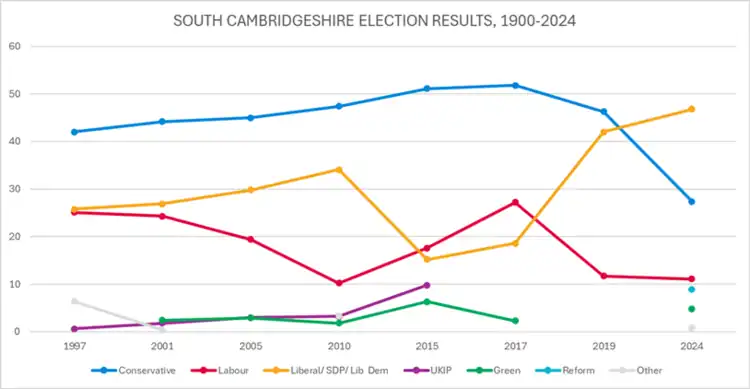 South Cambridgeshire is a constituency[n 1] represented in the House of Commons of the UK Parliament since the 2024 general election by Pippa Heylings of the Liberal Democrats.