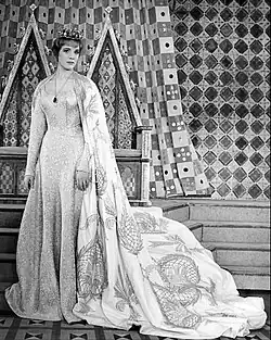Camelot opened on Broadway at the Majestic Theatre on December 3, 1960, and closed on January 5, 1963, after 873 performances and 2 previews.[24] Directed by Moss Hart, the choreography was by Hanya Holm, scenic design by Oliver Smith, costume design by Adrian (who worked on the designs prior to his death in September 1959) and Tony Duquette, and lighting design by Abe Feder. It won four Tony Awards. The original cast album was America's top-selling mono LP record for 6 weeks.[25]