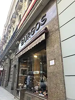 Camisería Burgos, commonly known as Burgos (Spanish: [ˈbuɾɣos]), is a gentleman's bespoke shirtmaker founded in 1906 in Madrid. The store has been located at Calle Cedaceros 2 since its opening, and until 1949, had another shop at Boulevard des Capucines in Paris. Their most popular products are bespoke shirts, guayaberas, pyjamas and Teba jackets.[1]