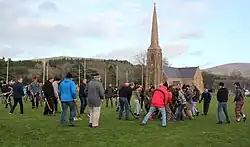 Cammag was gradually supplanted by hockey and hockey clubs were formed across the island in the early years of the twentieth century.[13] However, games of cammag were played again in 1937 as part of Hollantide Night festivities held by Aeglagh Vannin.[14] In July 1938, a camogie exhibition match was played in Noble's Park, Douglas as part of the Celtic Congress being held on the island. The match drew comparisons with cammag in the press.[15] In 1979, a composite rules shinty–hurling international match between Scotland and Ireland was played at Port-e-Chee, Douglas, as part of the island's millennium celebrations. Ireland won 7-3.[16]