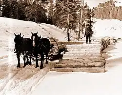Camp Dubois Tie driver, taking log to the Wyoming Tie and Timber Company, to be made into railroad ties for the growing railroad industry. Dubois timber camps supplied the Chicago and Northwestern Railroad