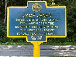 Camp Jened was a summer camp for disabled people in the state of New York that became a springboard for the disability rights movement and independent living movement in the United States.[1][2] Many campers and counselors (known as "Jenedians")[2] became disability rights activists, such as Judith Heumann,[3] James LeBrecht,[4] and Bobbi Linn.[5]
