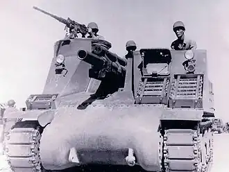 ![]() M4 self-propelled 105 mm artillery at Camp Laguna in 1943 | |