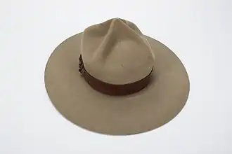Campaign hats are worn by US park rangers of the National Park Service. The federal troops sent to protect the resources of the first national parks were cavalry troopers, whose campaign hat was adopted by the Park Service as a symbol of authority.