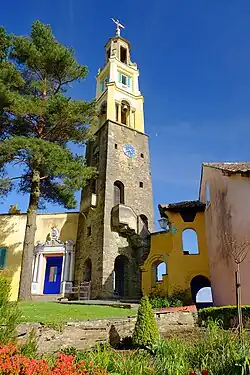 The Campanile or Bell Tower (Welsh: Y Tŵr Clychau) is a prominent structure in the village of Portmeirion, in Gwynedd, northwest Wales. Portmeirion was created as an Italianate village by the architect, Clough Williams-Ellis, who bought the Aber Iâ mansion and its estate in 1925 as the location for his project, building his eccentric, eclectic village between 1925 and 1975.[1] The Campanile is a Grade II* listed building.[2]
