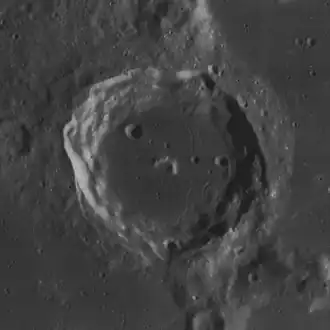 Campanus is a lunar impact crater that is located on the southwestern edge of Mare Nubium. It was named after Italian astronomer Campanus of Novara.[2] It forms a crater pair with Mercator just to the southeast. Along the southern rampart of Campanus is the small lunar mare named Palus Epidemiarum. To the southwest is the small crater Dunthorne.