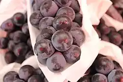 Campbell Early is a hybrid table grape cultivar (Vitis × labruscana). It is also known by several other names, including Boscoso, Island Belle, Campbell's Early, and Early Campbell. Its fruits are prized for their attractive appearance and sweetness. It is the main variety for the production of table grapes in South Korea, accounting for over 70 % in 2009.[1] In Japan, the berries are mainly used for juicing and wine.[2] It used to be a highly recommended standard variety for the New York market.[3]